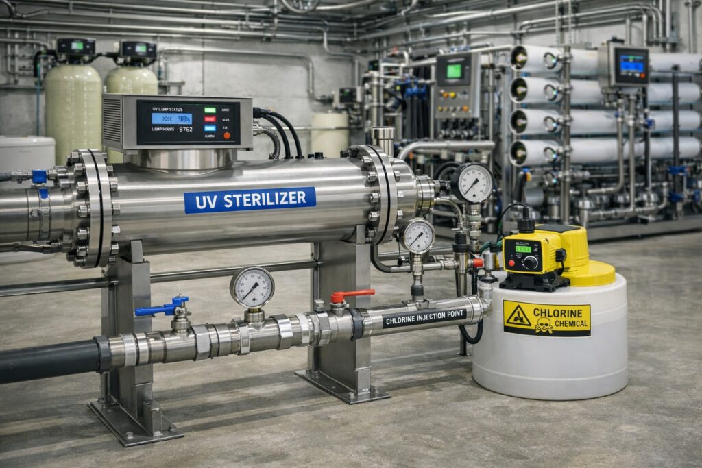 Implementation of robust disinfection technologies (e.g., UV, chlorination, ozonation) to eliminate pathogens and bacteria, ensuring compliance with local health and environmental regulations for all water systems.